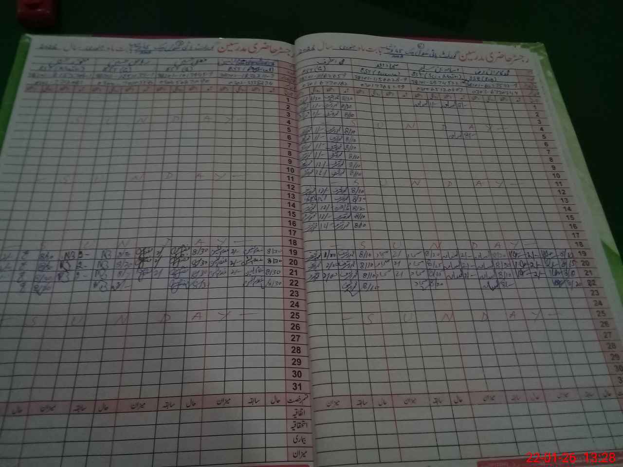 | CNIC | Full Name | Designation | R/C | Absence During Last Calender Month |