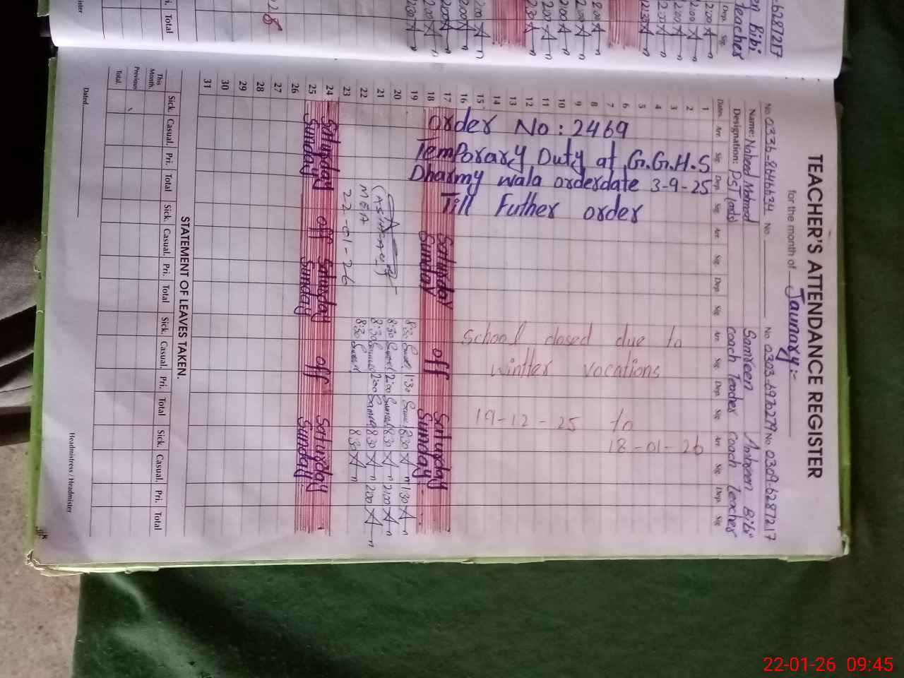 | Name: NA**** ME**** Designation: (School Headmaster's/Headmistress's) PST Phone/Cell Number: 03**** |