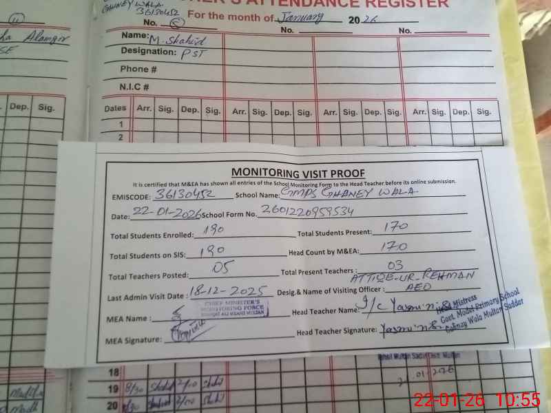 | Attendance Register | Head Teacher | MEA with School | Visit Proof |