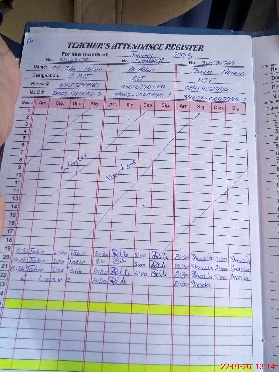 | Name: MU**** TA**** HA**** Designation: (School Headmaster's/Headmistress's) PST Phone/Cell Number: 03**** |