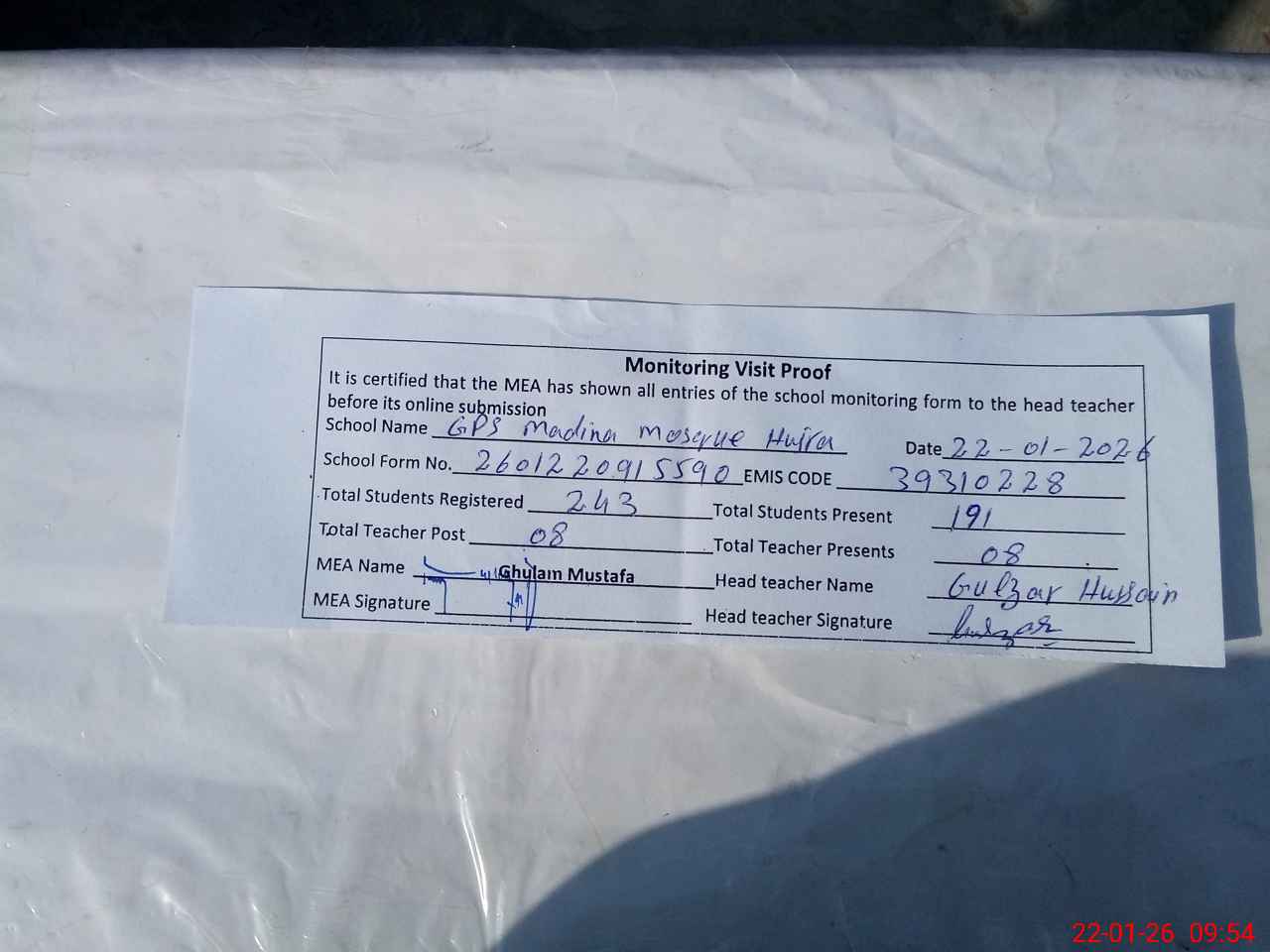 | EMIS Code: 39310228 | Name of School: GPS MADINA MOSQUE HUJRA | |||