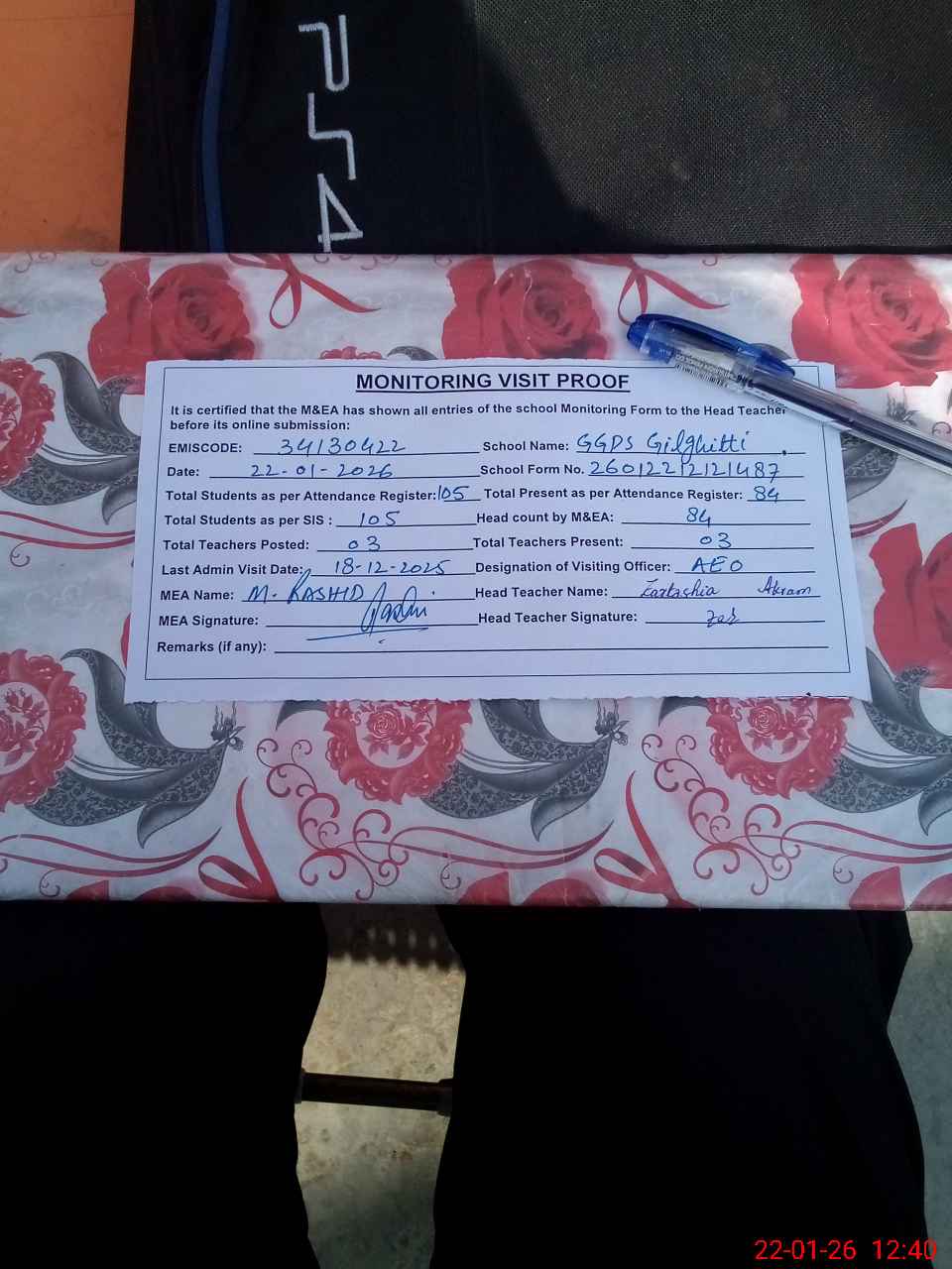 | Attendance Register | Head Teacher | MEA with School | Visit Proof |