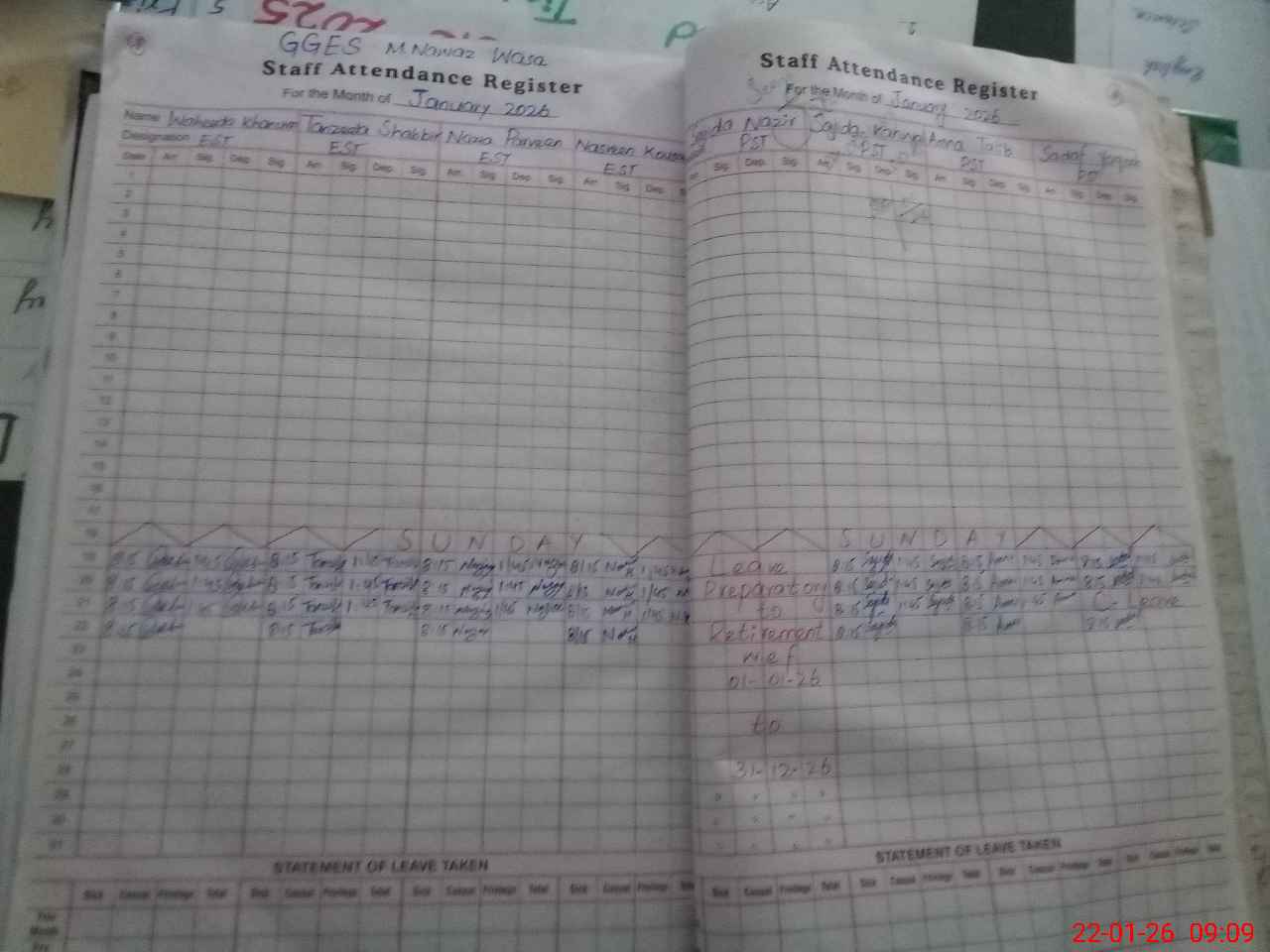 | CNIC | Full Name | Designation | R/C | Absence During Last Calender Month |