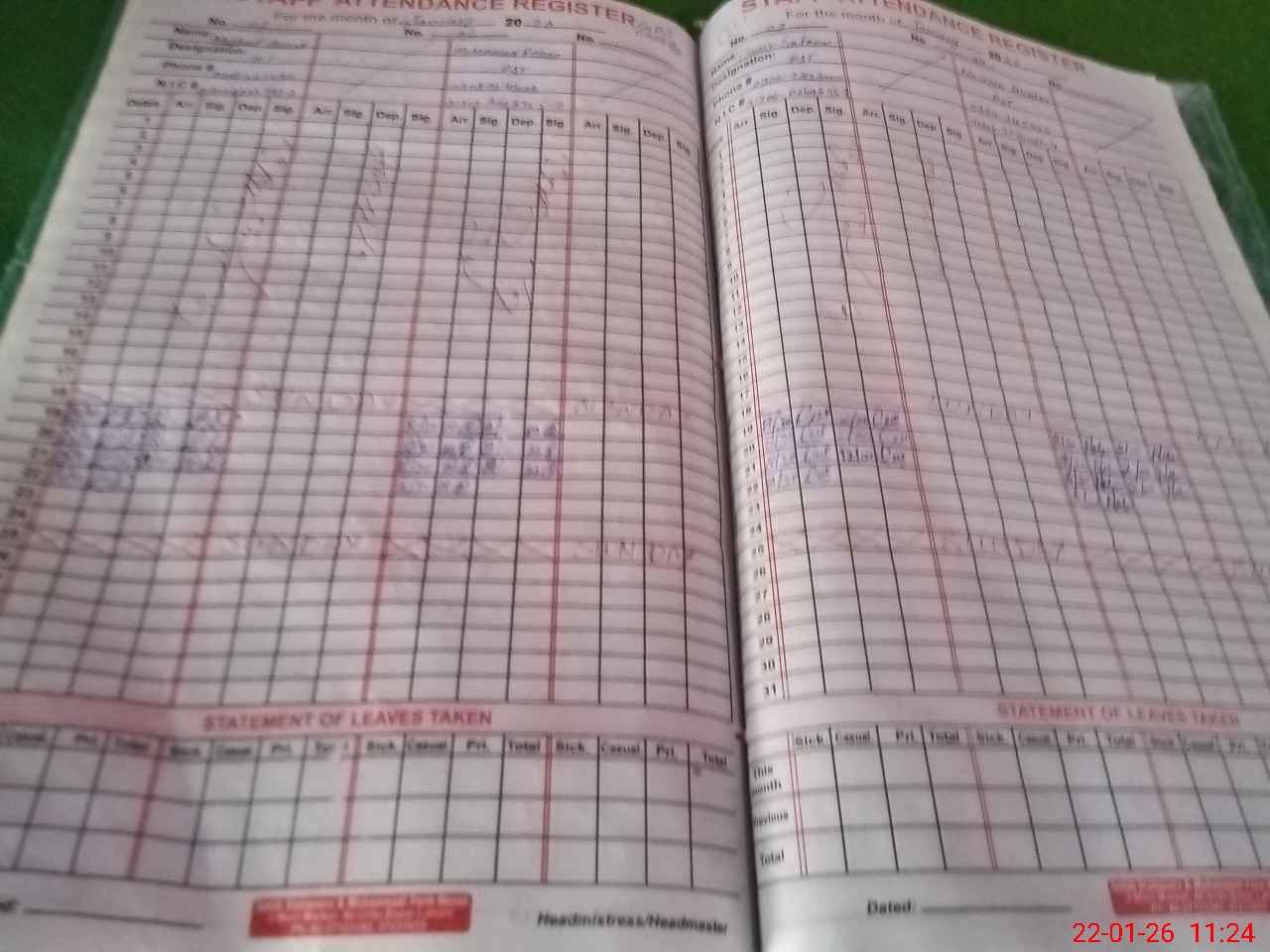 | CNIC | Full Name | Designation | R/C | Absence During Last Calender Month |
