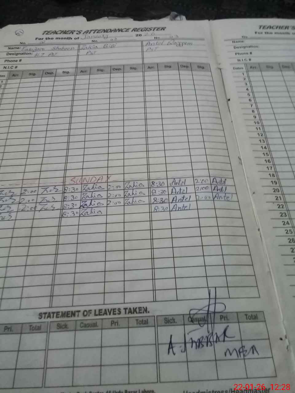 | Name: FA**** SH**** Designation: (School Headmaster's/Headmistress's) PST Phone/Cell Number: 03**** |
