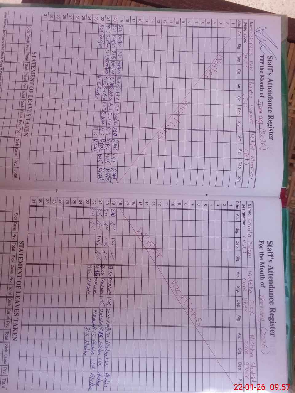 | Leave | Duty | Absent | Maternity | Medical | Ex- Pak |