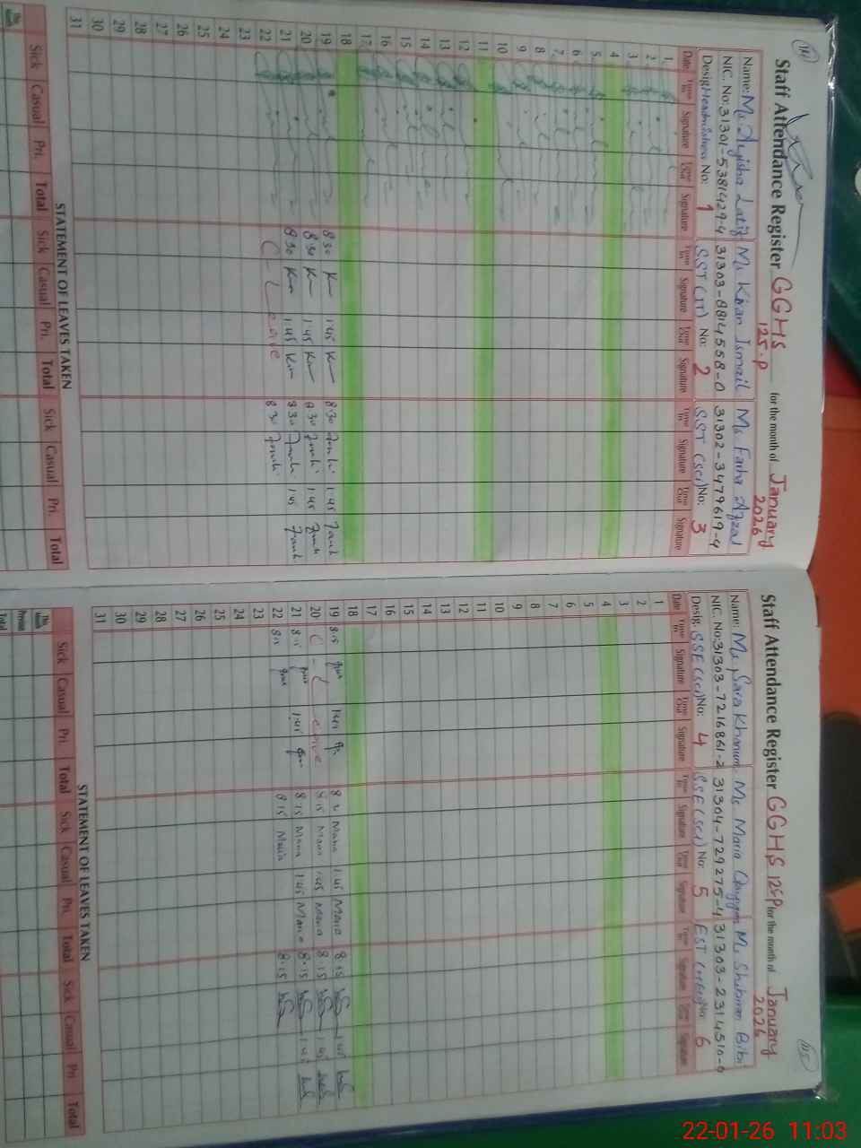 | CNIC | Full Name | Designation | R/C | Absence During Last Calender Month |