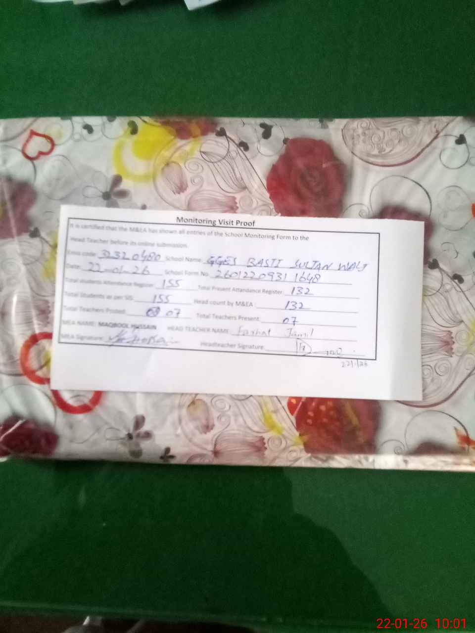| Attendance Register | Head Teacher | MEA with School | Visit Proof |