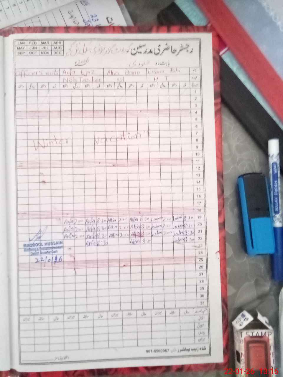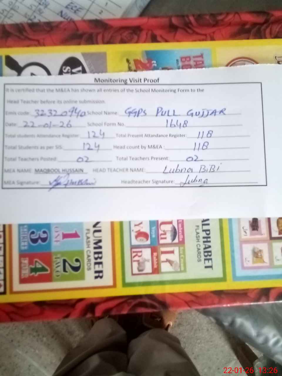 | Attendance Register | Head Teacher | MEA with School | Visit Proof |