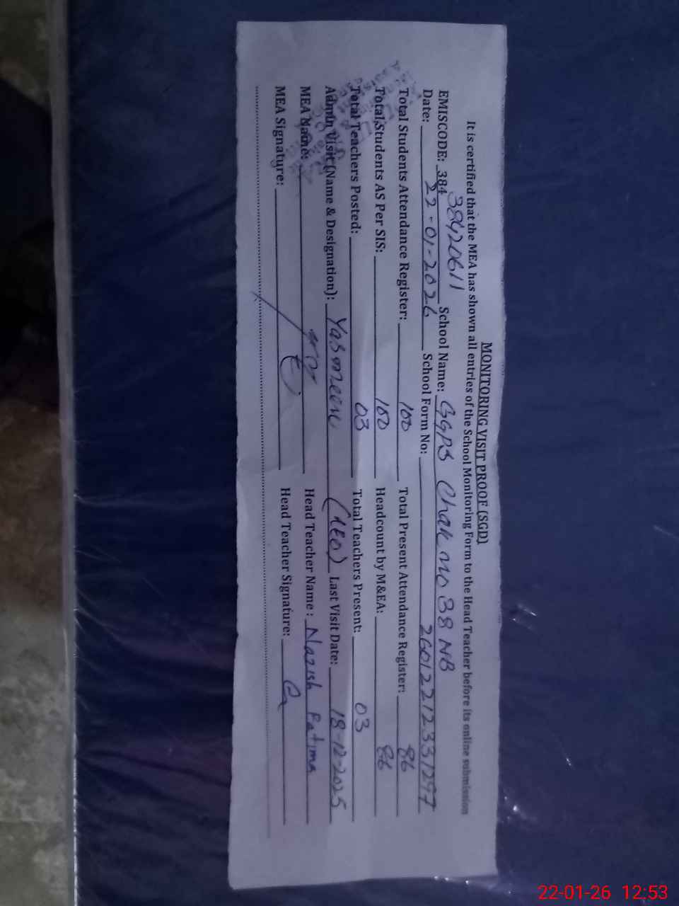 | EMIS Code: 38420611 | Name of School: GGPS CHAK NO.38 NB | |||