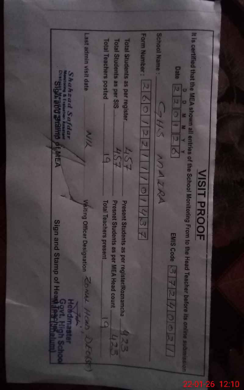 | Attendance Register | Head Teacher | MEA with School | Visit Proof |