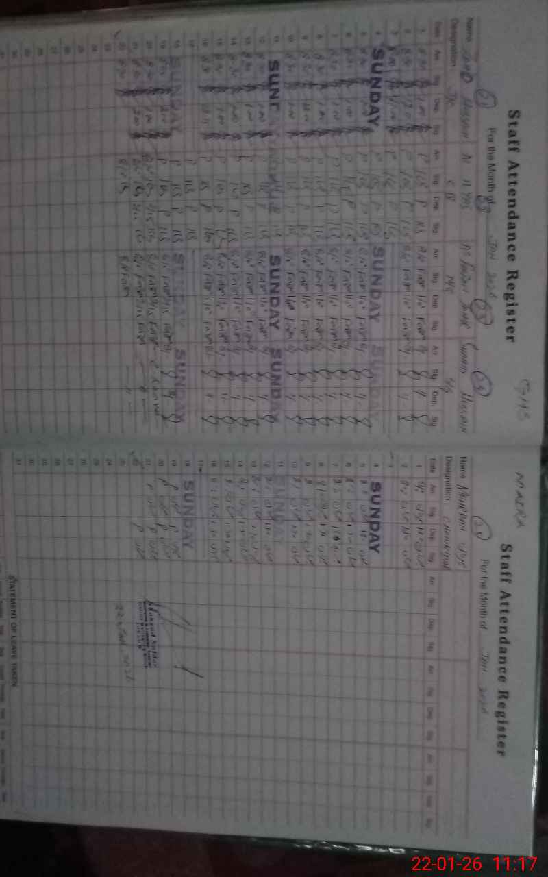 | CNIC | Full Name | Designation | R/C | Absence During Last Calender Month |