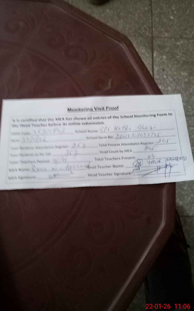 | Attendance Register | Head Teacher | MEA with School | Visit Proof |