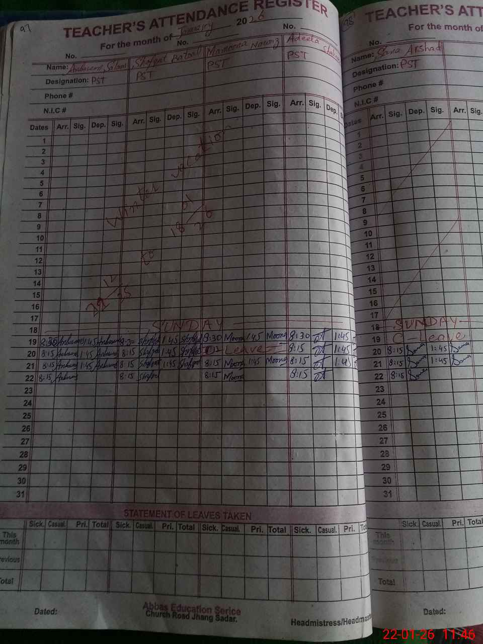 | Name: AM**** SA**** Designation: (School Headmaster's/Headmistress's) PST Phone/Cell Number: 03**** |