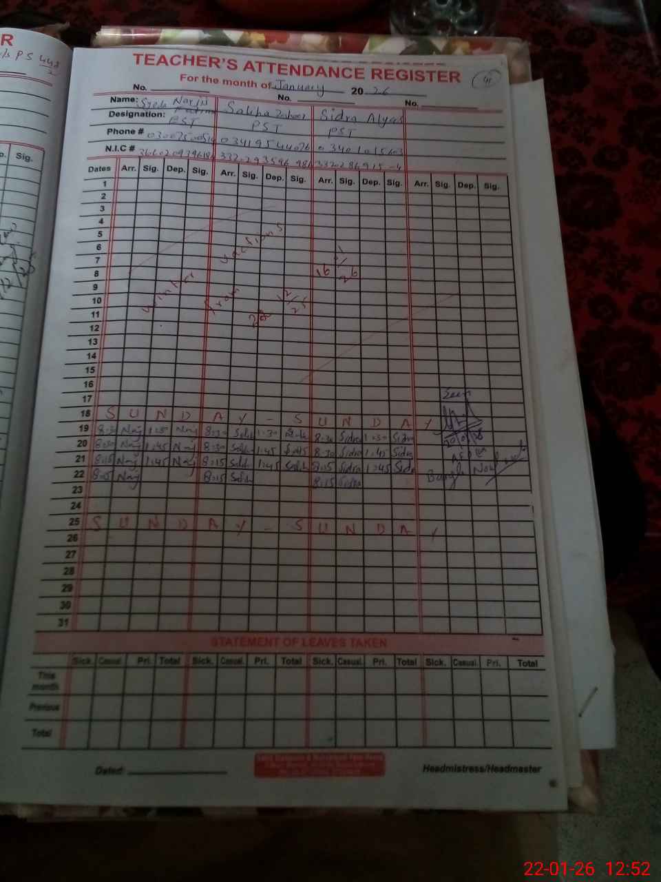 | Name: Sy**** Na**** Fa**** Designation: (School Headmaster's/Headmistress's) EST Phone/Cell Number: 03**** |