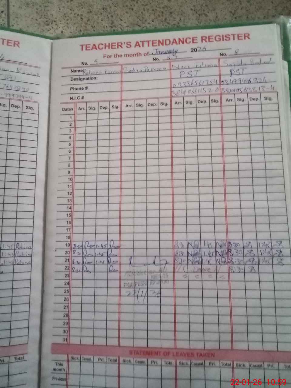 | Name: Bu**** No**** Designation: (School Headmaster's/Headmistress's) SST Gen Phone/Cell Number: 03**** |