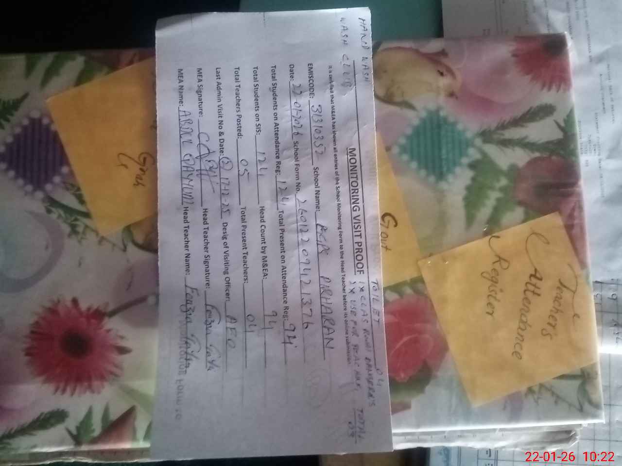 | Attendance Register | Head Teacher | MEA with School | Visit Proof |