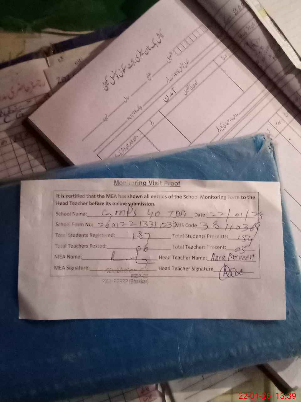 | Attendance Register | Head Teacher | MEA with School | Visit Proof |