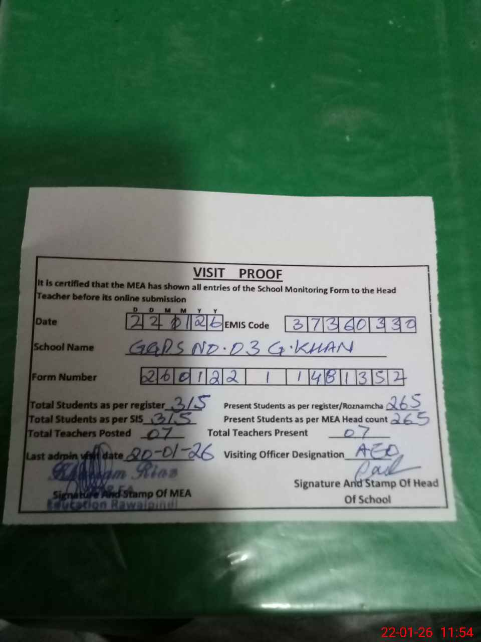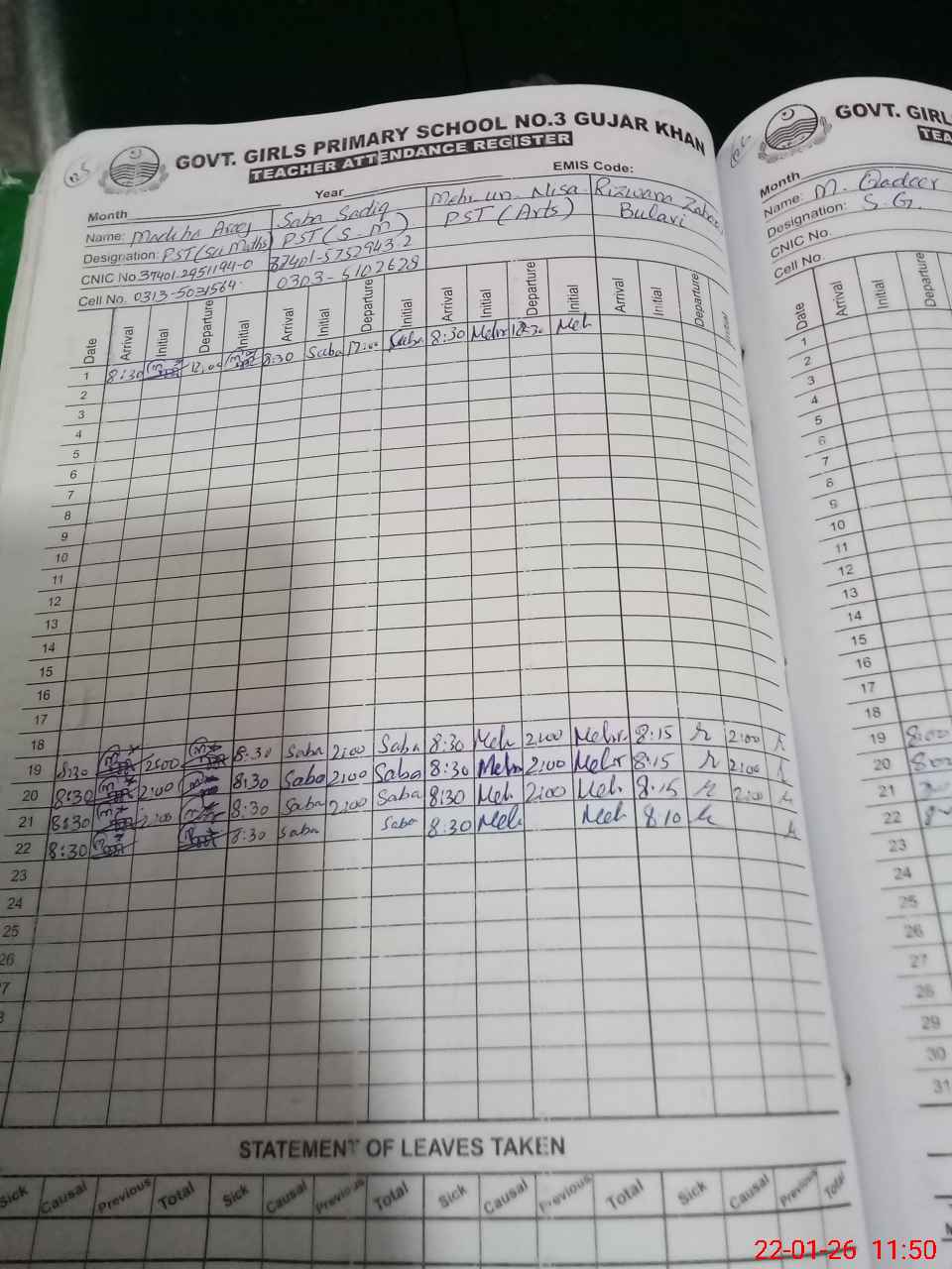 | EMIS Code: 37360330 | Name of School: GGPS NO. 3 GUJAR KHAN | |||