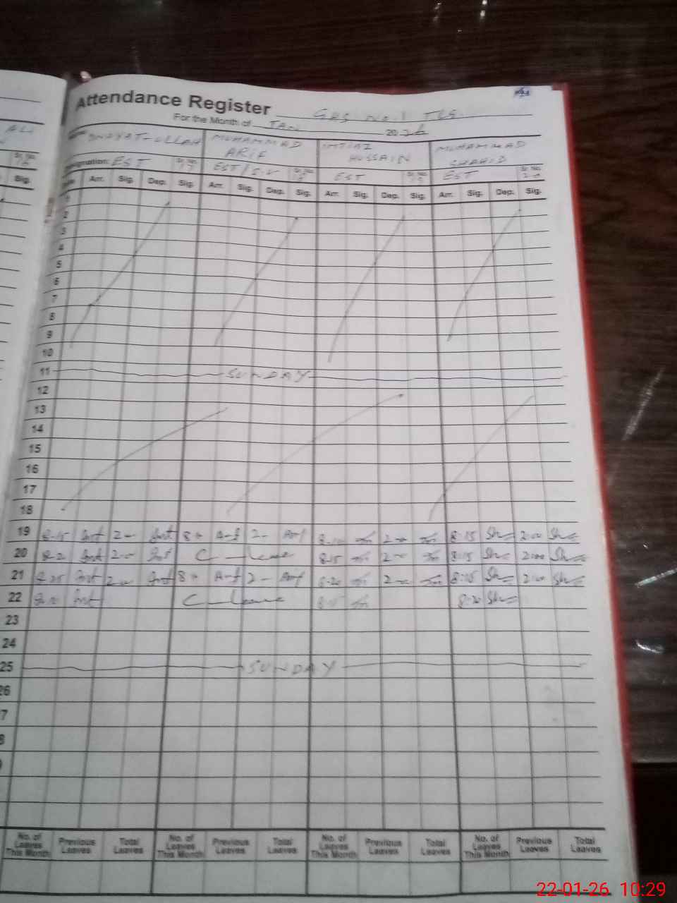 | CNIC | Full Name | Designation | R/C | Absence During Last Calender Month |