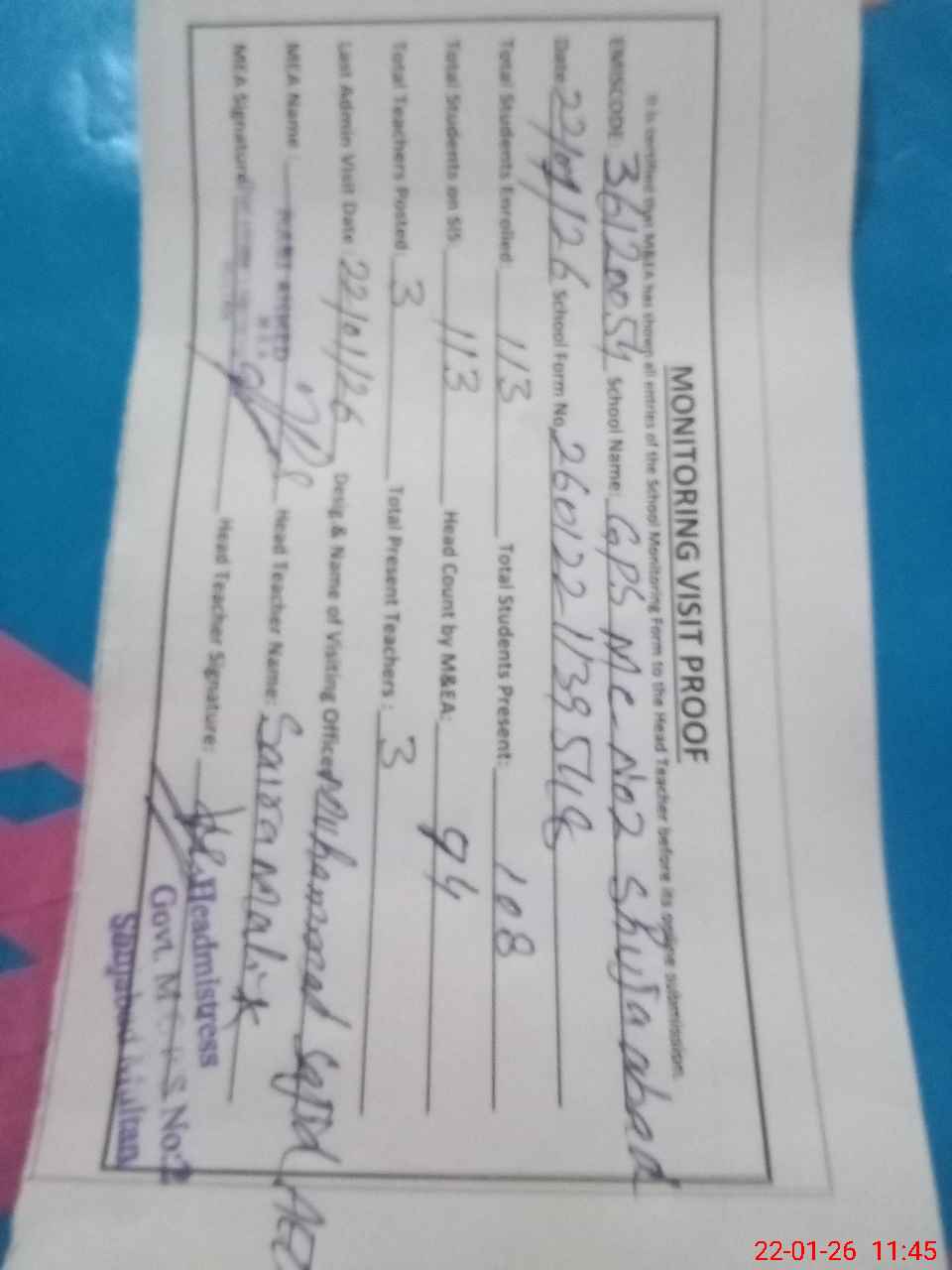 | EMIS Code: 36120054 | Name of School: GPS MC NO.2 SHUJA ABAD | |||