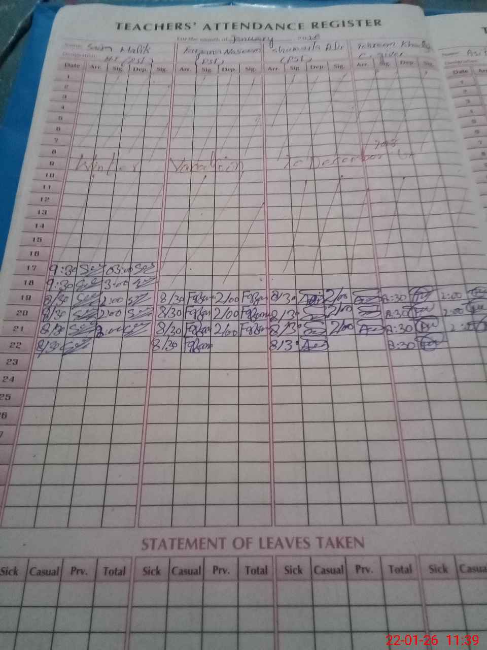 | Name: SA**** MA**** Designation: (School Headmaster's/Headmistress's) Pssp Phone/Cell Number: 03**** |
