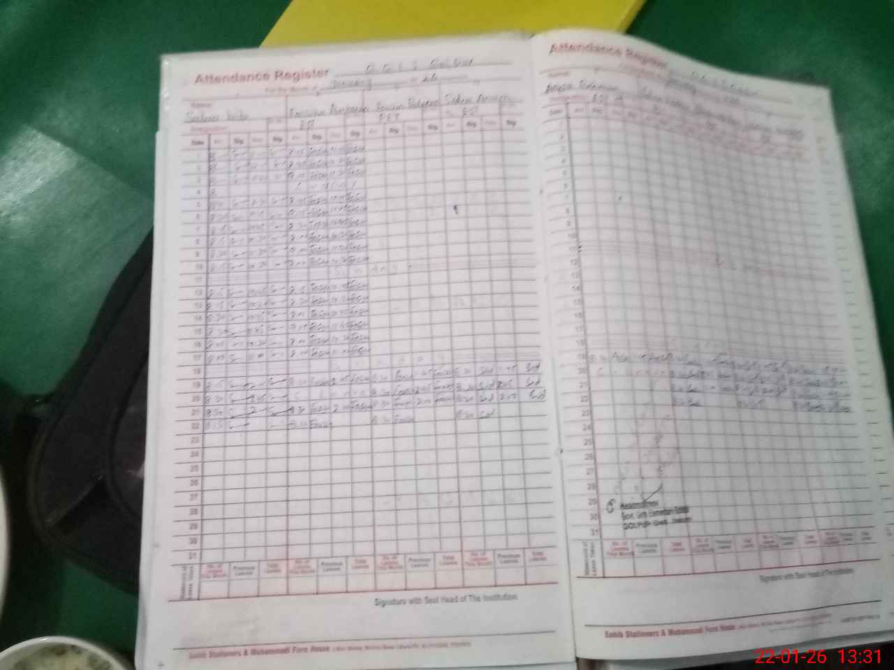 | CNIC | Full Name | Designation | R/C | Absence During Last Calender Month |