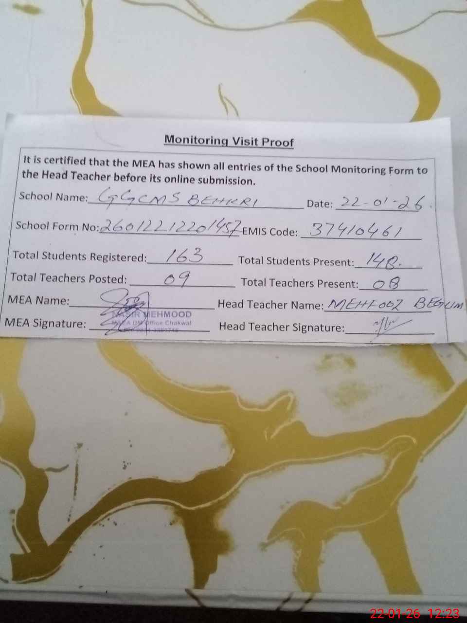 | EMIS Code: 37410461 | Name of School: GGCMS BEHKARI | |||