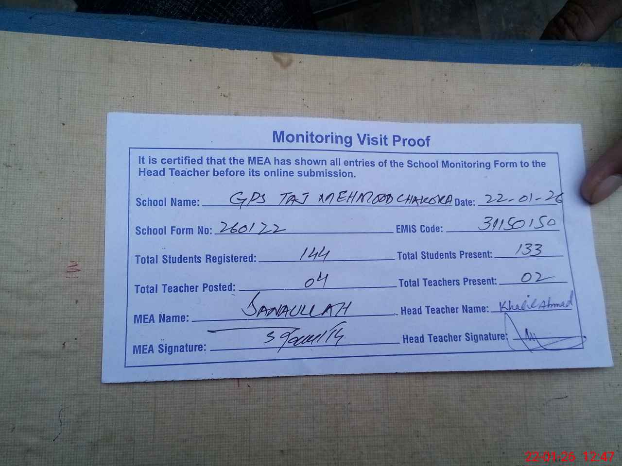 | EMIS Code: 31150150 | Name of School: GPS TAJ MEHMOOD CHAKUKA | |||