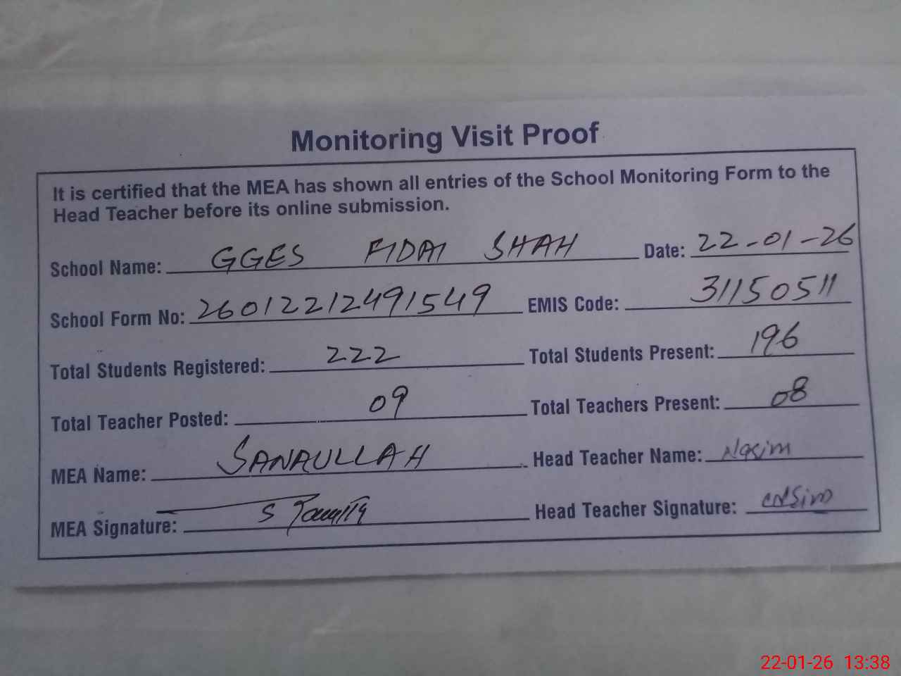 | EMIS Code: 31150511 | Name of School: GGES FADAI SHAH | |||