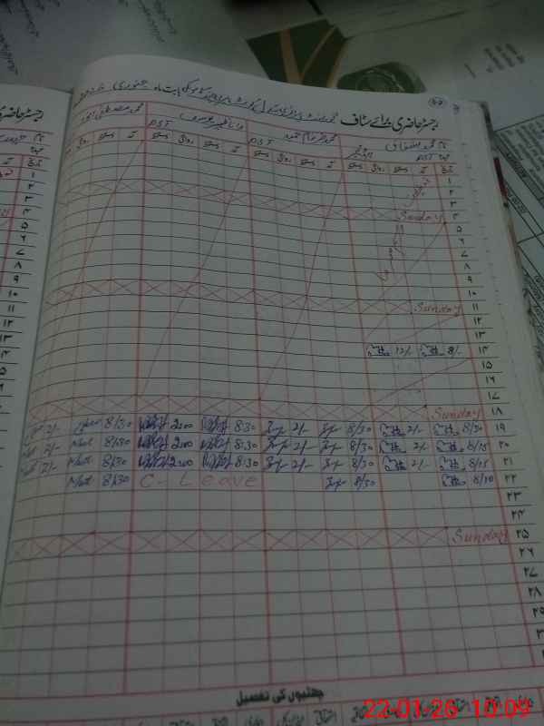 | CNIC | Full Name | Designation | R/C | Absence During Last Calender Month |