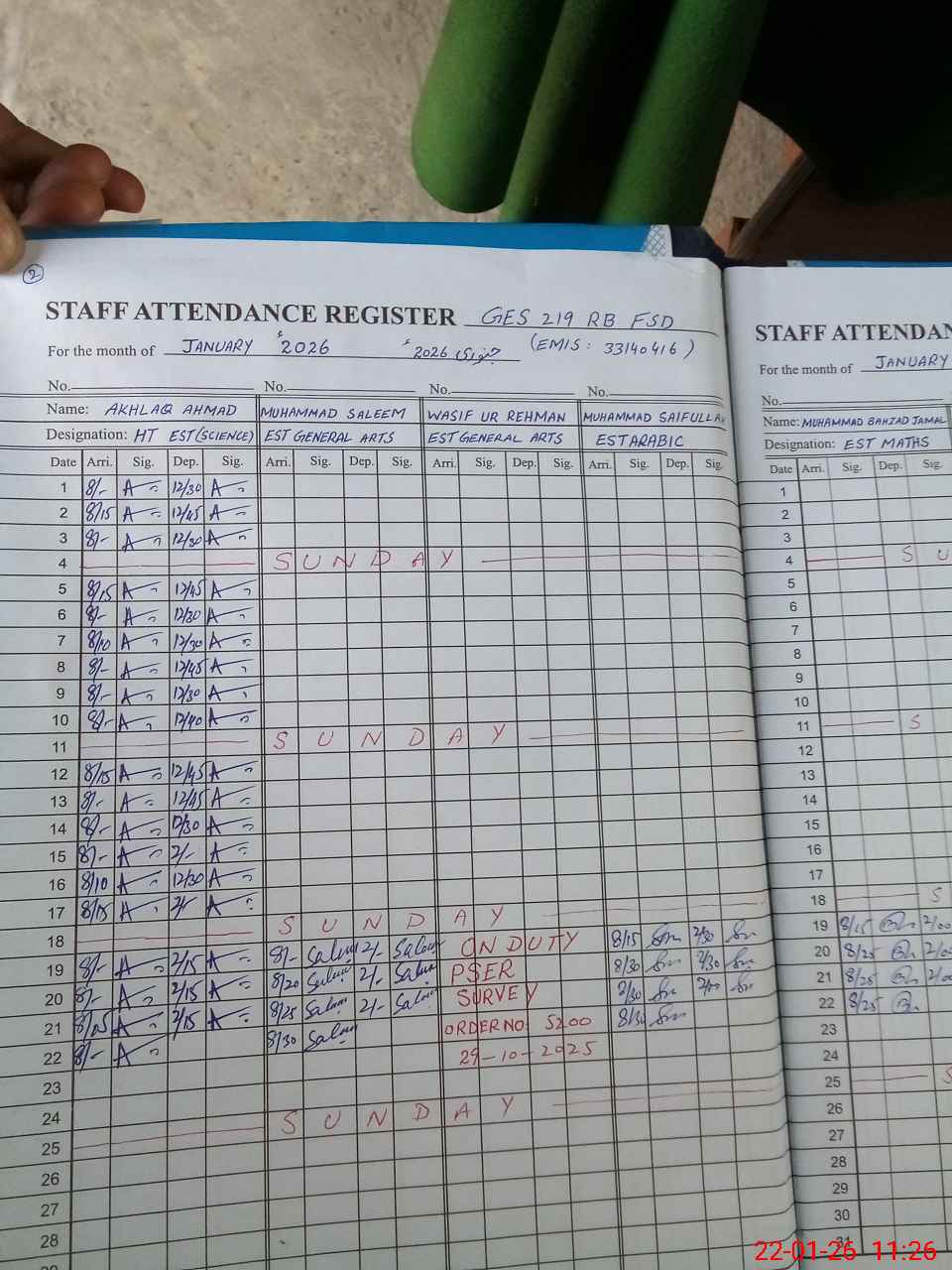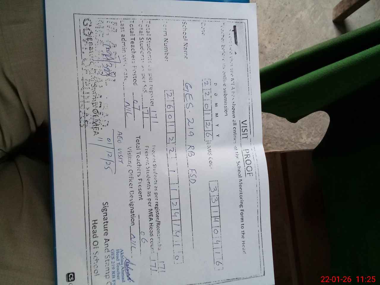 | Name: AK**** AH**** Designation: (School Headmaster's/Headmistress's) EST (INCHATGE) Phone/Cell Number: 03**** |