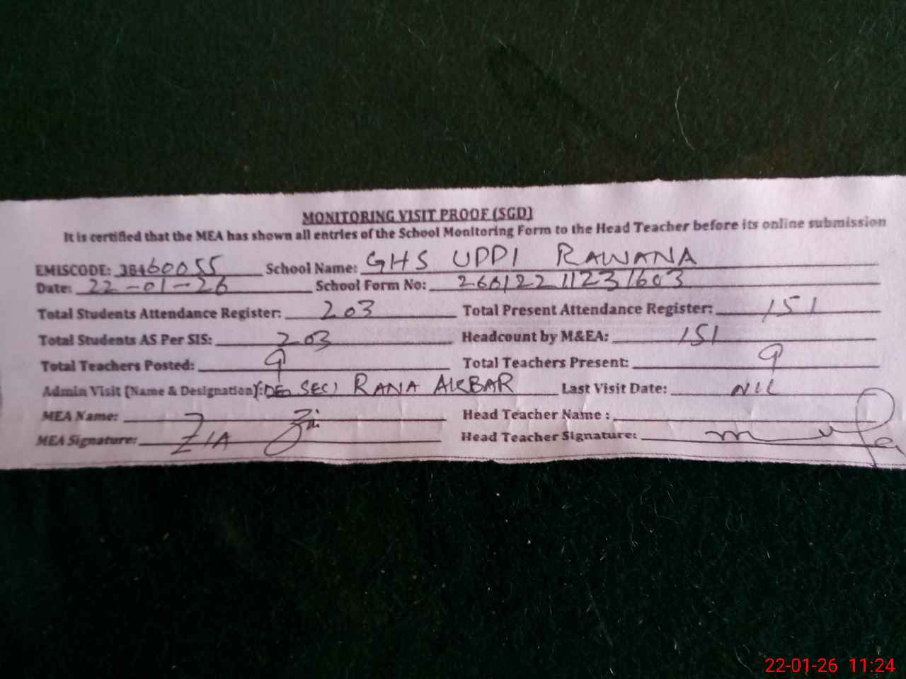 | EMIS Code: 38460055 | Name of School: GHS UPPI RAWANA | |||
