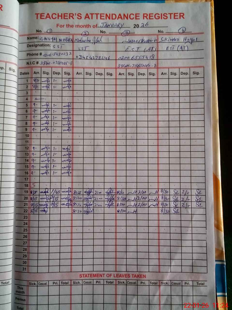 | Name: GH**** MU**** Designation: (School Headmaster's/Headmistress's) SST Arts Icharge Phone/Cell Number: 03**** |