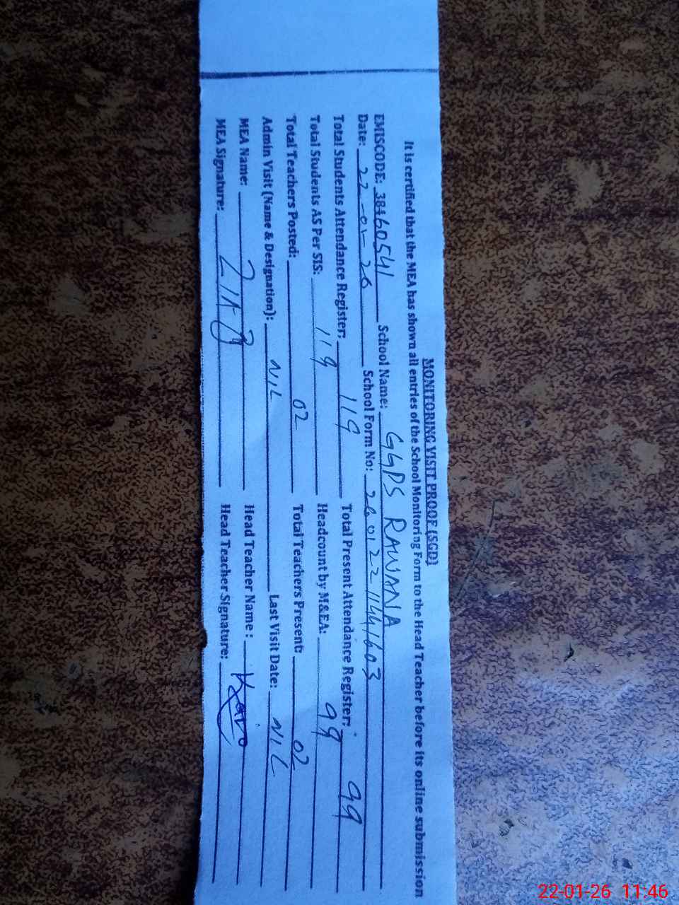 | EMIS Code: 38460541 | Name of School: GGPS RAWANA | |||