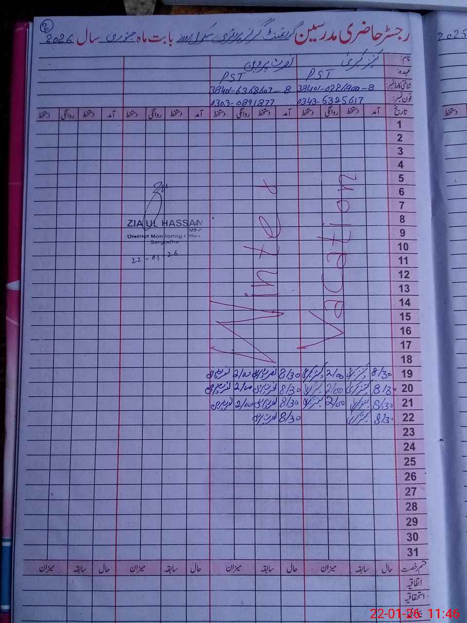 | Name: KA**** KU**** Designation: (School Headmaster's/Headmistress's) PST Phone/Cell Number: 03**** |