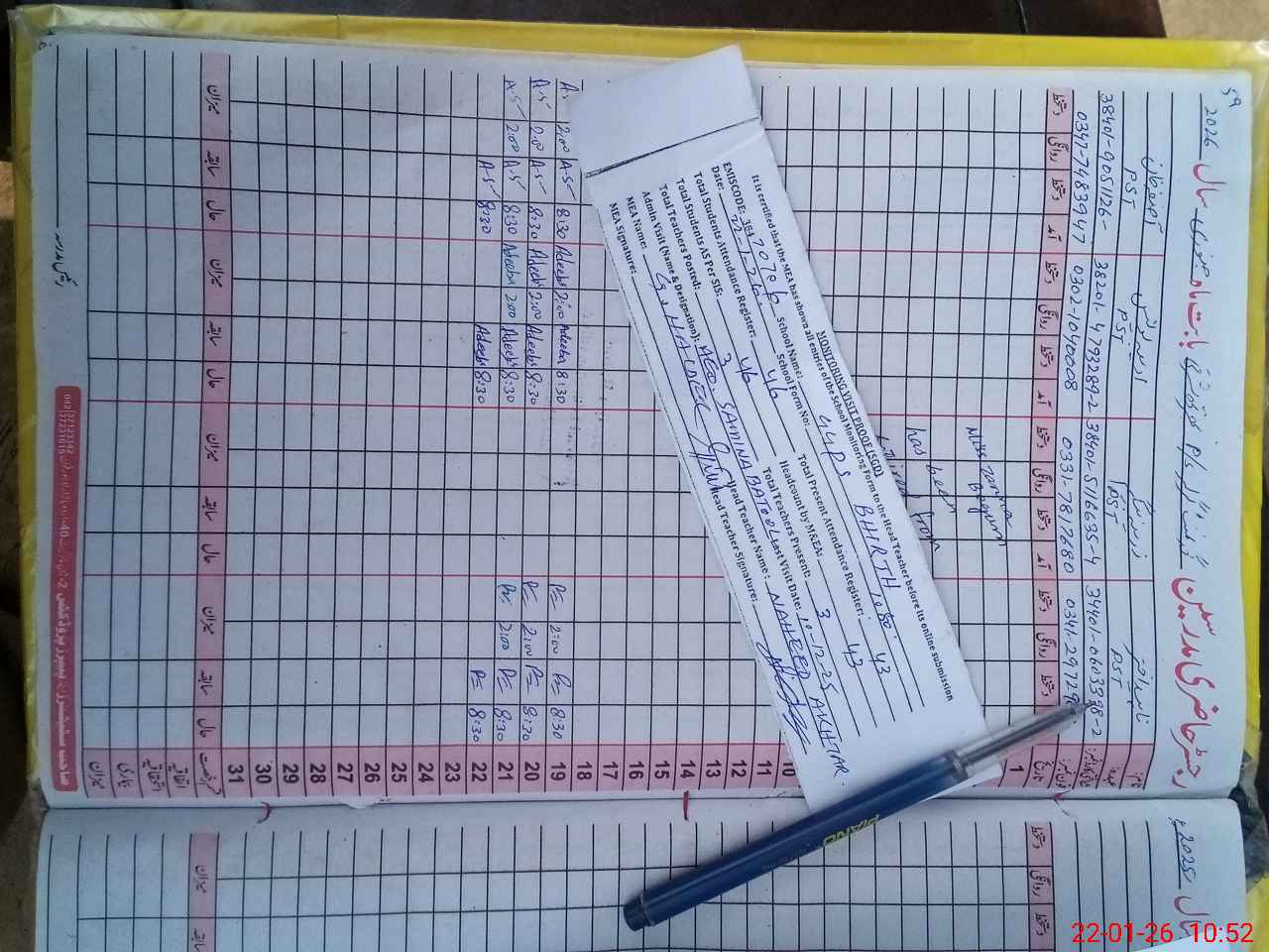 | Name: NA**** AK**** Designation: (School Headmaster's/Headmistress's) PST Phone/Cell Number: 03**** |