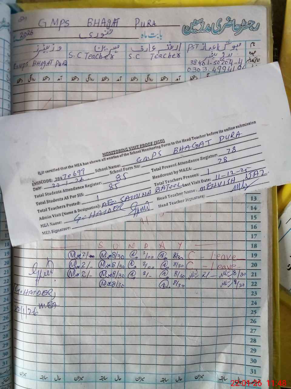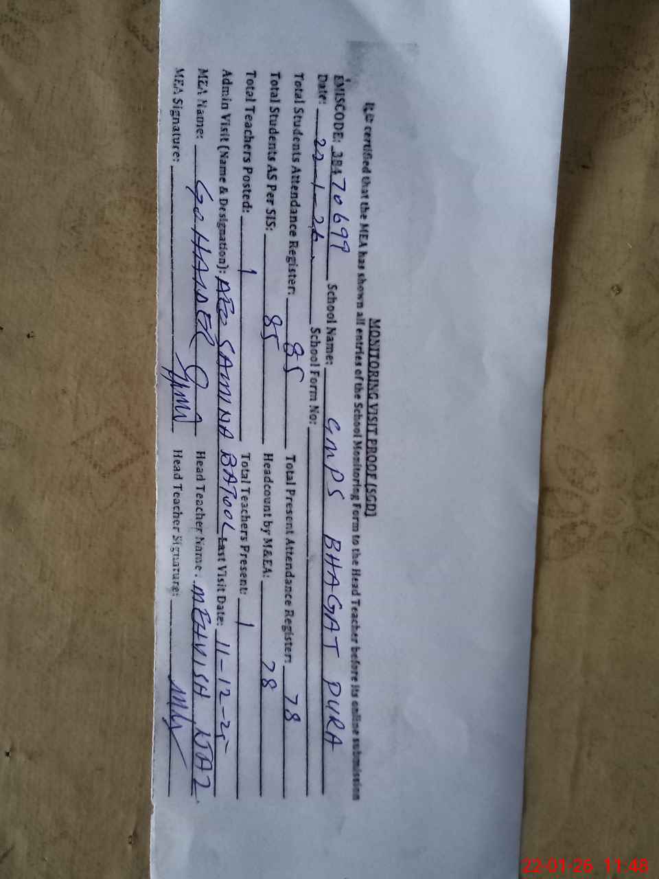 | EMIS Code: 38470699 | Name of School: GMPS BHAGAT PURA | |||