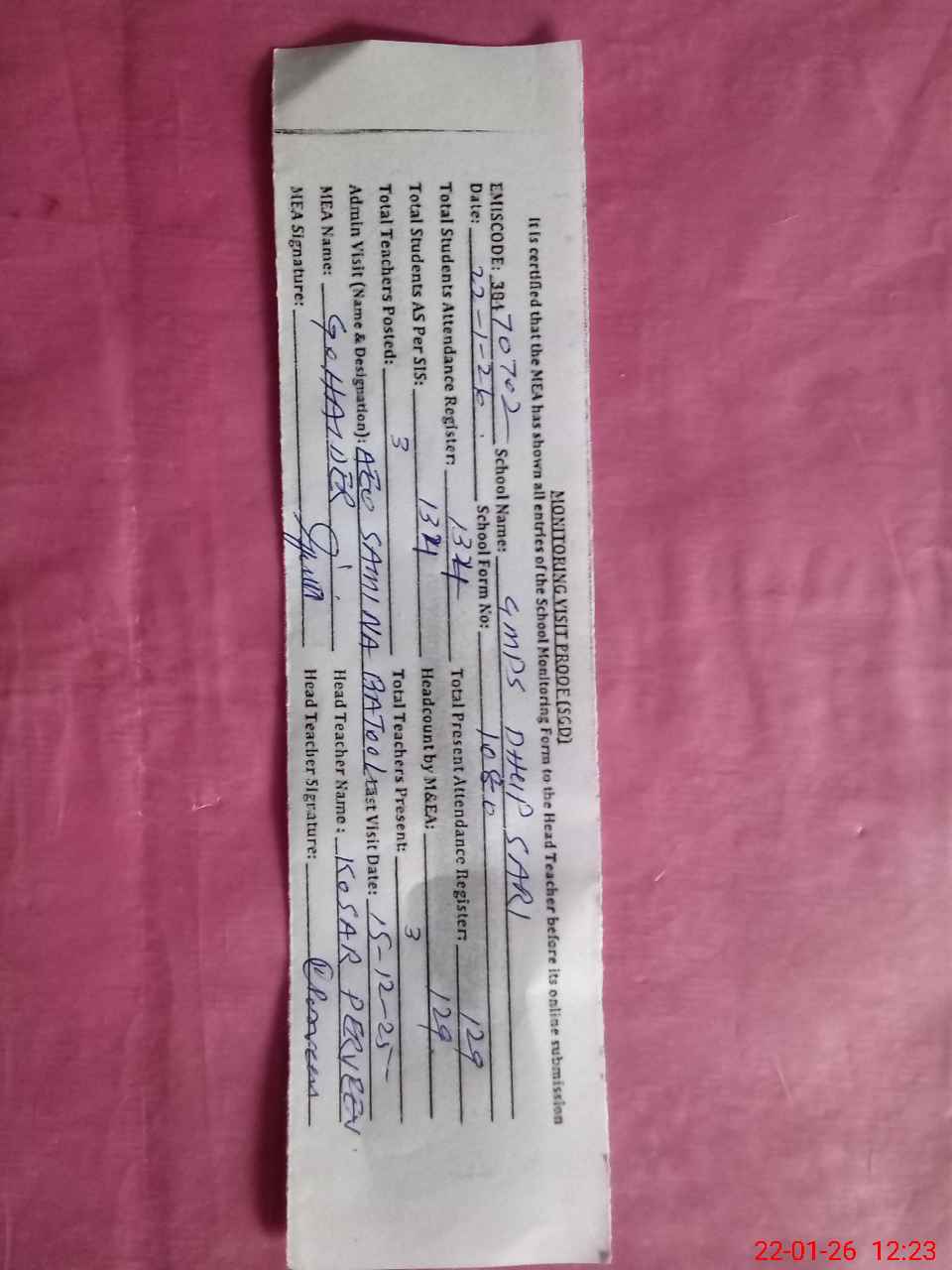 | EMIS Code: 38470702 | Name of School: GGPS DHUP SARRI | |||
