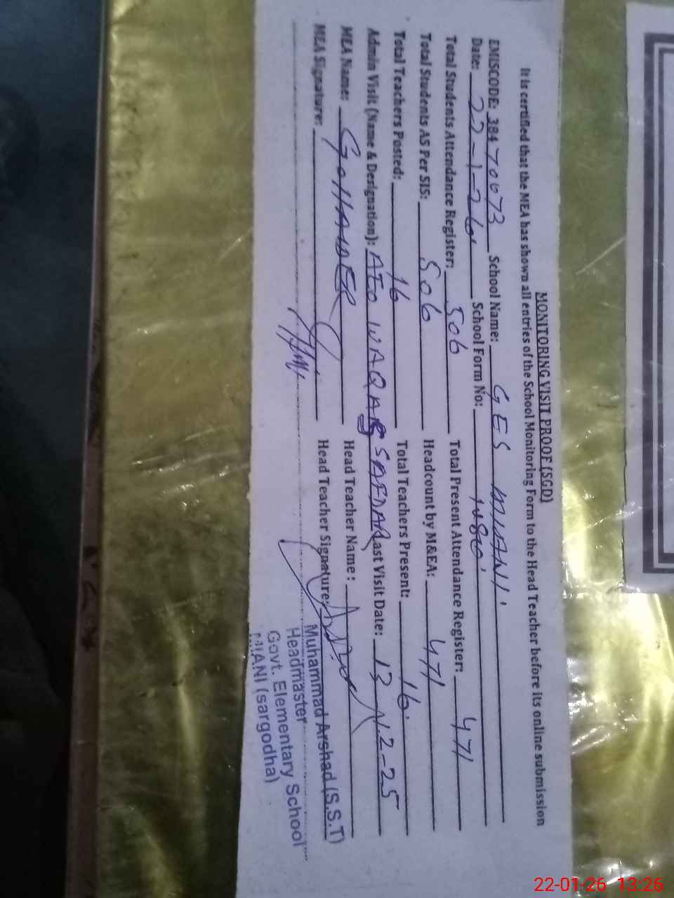 | Name: Mu**** Ar**** Designation: (School Headmaster's/Headmistress's) SST Phone/Cell Number: 03**** |