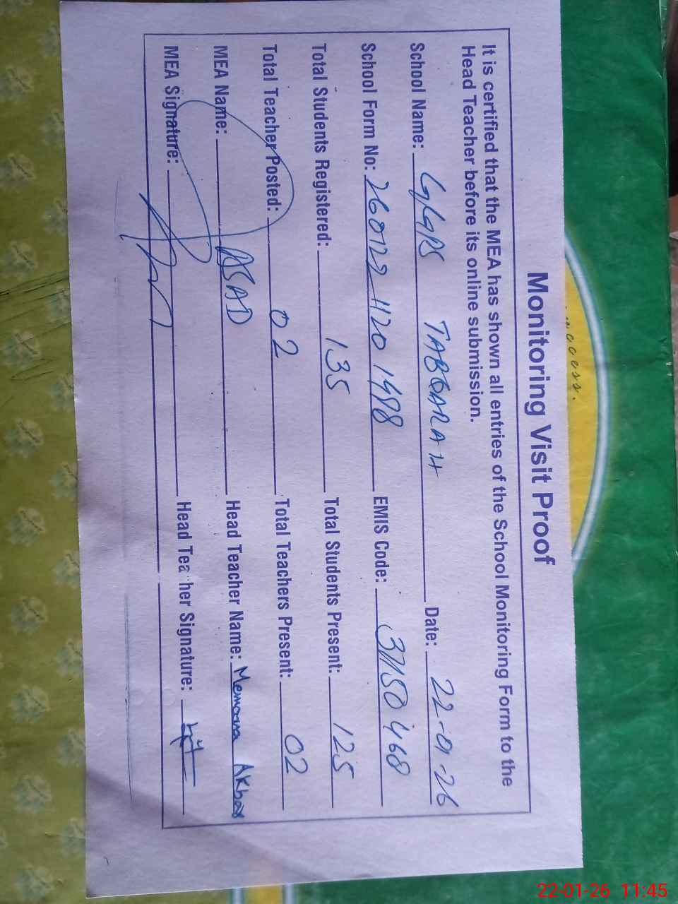 | EMIS Code: 31150468 | Name of School: GGPS TABQRAH | |||
