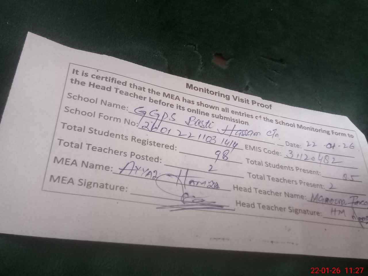 | EMIS Code: 31120482 | Name of School: GGPS BASTI HASAM | |||