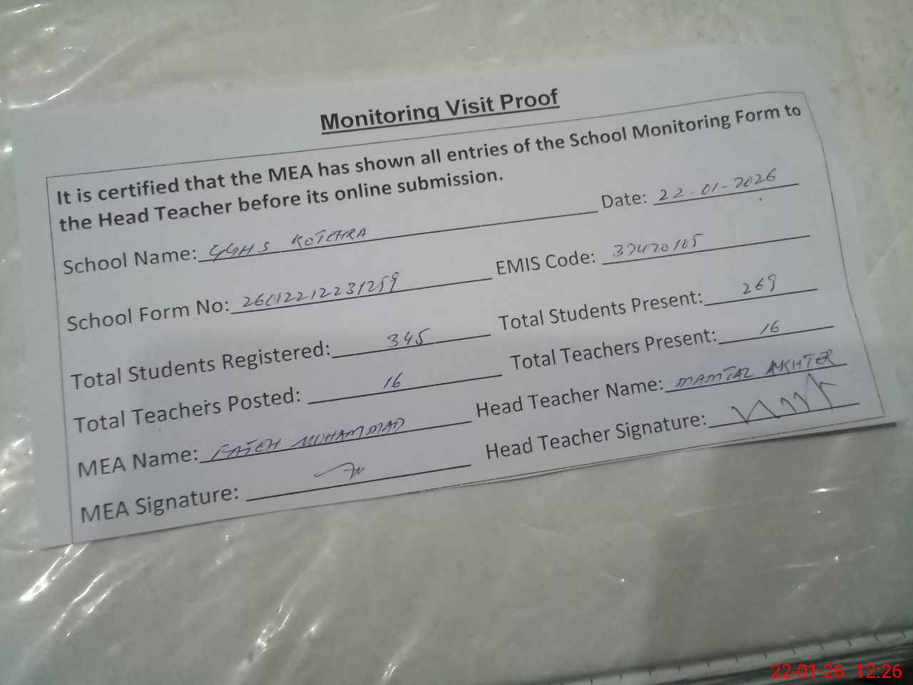 | EMIS Code: 37420105 | Name of School: GGHS KOTEHRA | |||