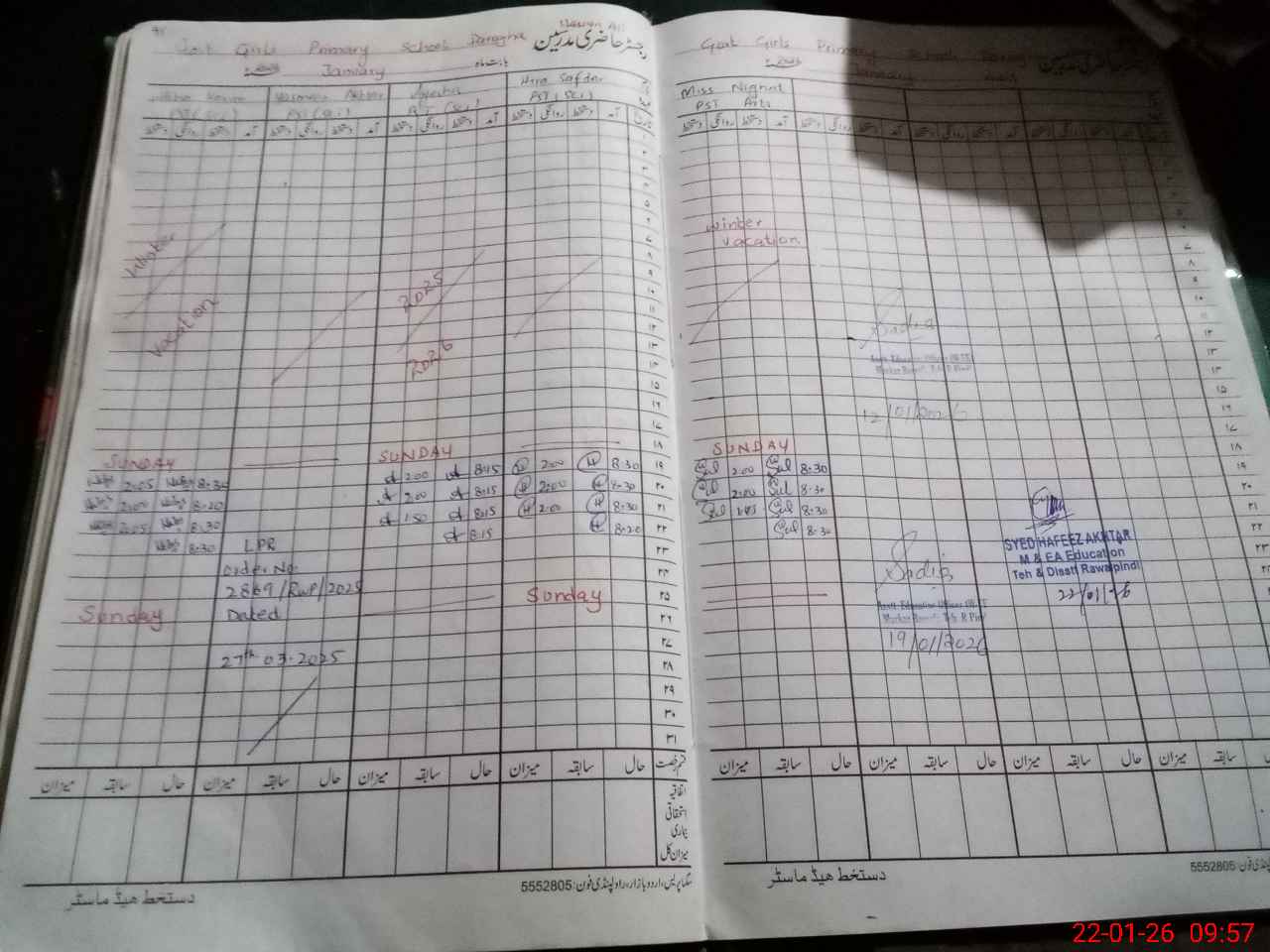 | CNIC | Full Name | Designation | R/C | Absence During Last Calender Month |