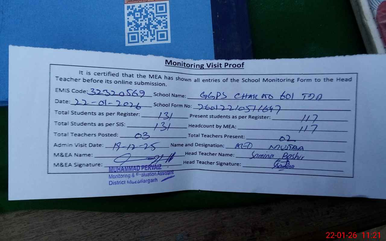 | EMIS Code: 32320569 | Name of School: GGPS CHAK NO. 601/TDA | |||
