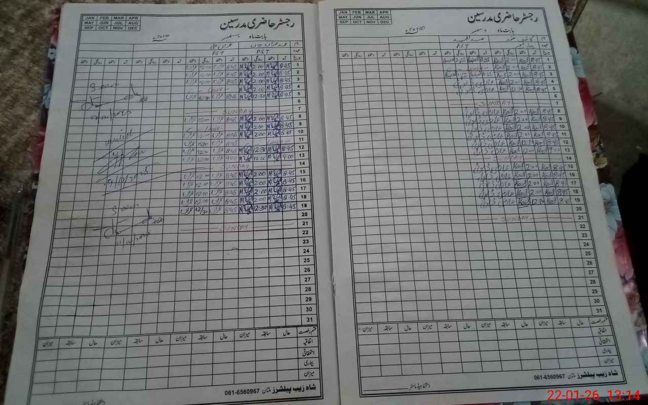 | CNIC | Full Name | Designation | R/C | Absence During Last Calender Month |