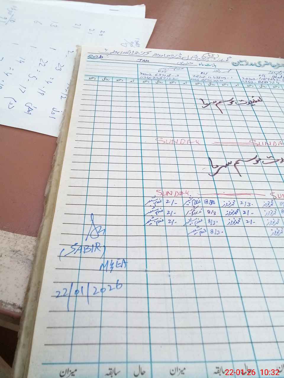 | CNIC | Full Name | Designation | R/C | Absence During Last Calender Month |