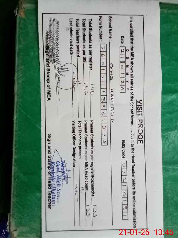 | EMIS Code: 37210181 | Name of School: GHS KANTRILA | |||