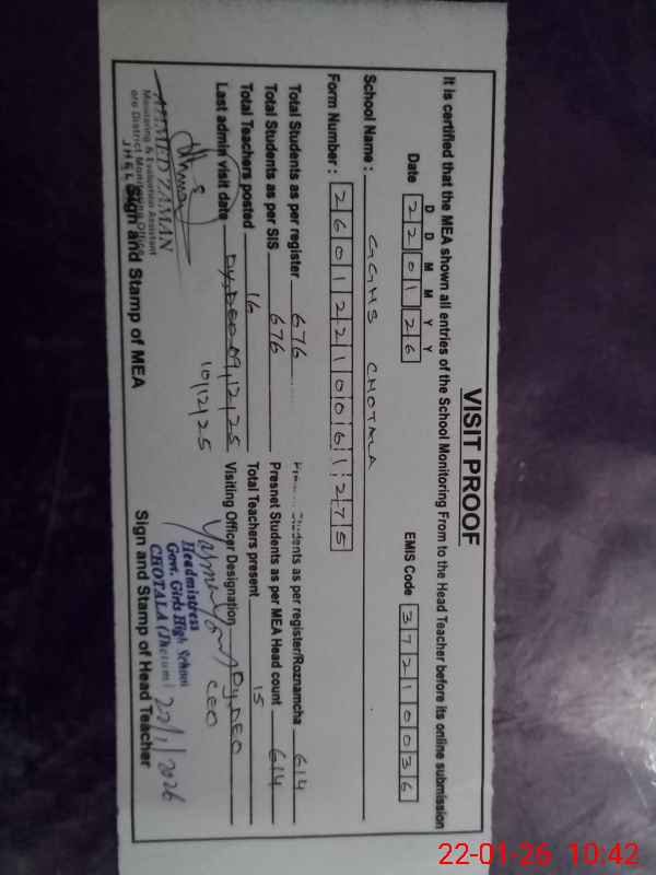 | EMIS Code: 37210036 | Name of School: GGHS CHOTALA | |||