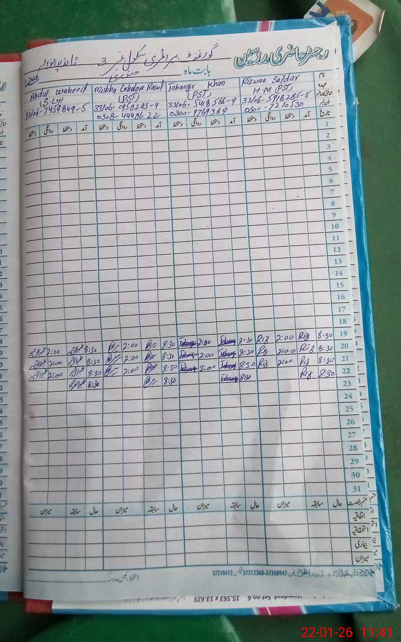 | Name: RI**** SA**** Designation: (School Headmaster's/Headmistress's) PST Phone/Cell Number: 03**** |